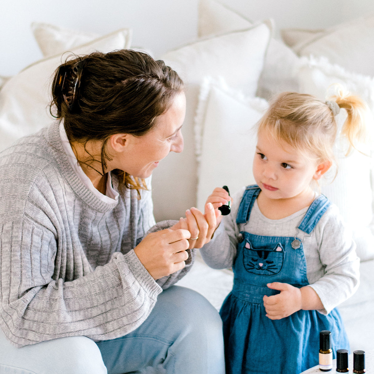 Can I use this blend for my child under 2 years old? Essential oils are considered too strong for use on babies’ skin (0-24 months) and can be overwhelming on their developing systems. However we can still use essential oils in a diffuser.
