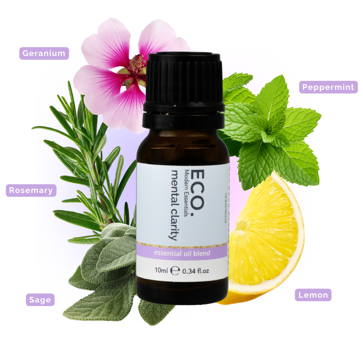 Mental Clarity Essential Oil Blend: Citrus limon (Lemon Oil), Rosmarinus officinalis (Rosemary Oil), Pelargonium graveolens (Geranium Oil), Mentha x piperita (Peppermint Oil), Salvia officinalis (Sage Oil)