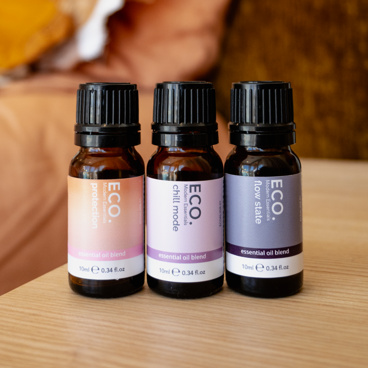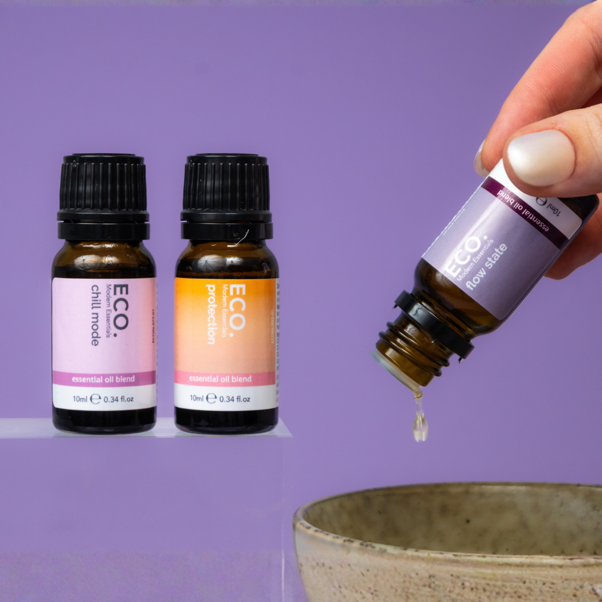Diffuser: Add 6-8 drops of Chill Mode, Protection, or Flow State to your diffuser to create a calming, protective, or focused atmosphere. You can also blend two or more of the oils for a customised energy ritual throughout the day.